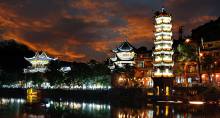 下午安排:乘車(chē)赴【芙蓉古鎮(zhèn)】(贈(zèng)送門(mén)票、景區(qū)環(huán)保車(chē)和酉水畫(huà)廊已含),山水如畫(huà),多情的酉水養(yǎng)育了世世代代的土家兒女,也造就了沿岸動(dòng)人的風(fēng)光,酉水畫(huà)廊納含著芙蓉鎮(zhèn)的草木、山水、人兒,一道道美麗的彩虹是它編織的最美西蘭卡普。這里得酉水舟楫之便,上通川渝,下達(dá)洞庭,素有“楚蜀通津”之稱(chēng)。因謝晉執(zhí)導(dǎo),劉曉慶、姜文主演的電影《芙蓉鎮(zhèn)》在此取景而出名,于是人們便把此地叫做芙蓉鎮(zhèn)。時(shí)代變遷,歷久彌新,更因其獨(dú)特的原始人文,靜謐山水成為新時(shí)代湖南旅游新寵。芙蓉古鎮(zhèn)大瀑布,酉水碼頭繁華依舊!乘車(chē)赴神秘湘西深處鳳凰古城,這里被譽(yù)為遠(yuǎn)去的家園,夢(mèng)中的故鄉(xiāng),邂逅邊城的燈火闌珊,品味獨(dú)特的夢(mèng)里苗疆。游覽被新西蘭著名作家路易艾黎稱(chēng)贊為中國(guó)最美麗的小城--【鳳凰古城】,體驗(yàn)和感受鳳凰古城的九大精華:一座青山抱古城、一泓沱水繞城過(guò)、一條紅紅石板街、一道風(fēng)雨古城墻、一座雄偉古城樓、一個(gè)美麗彩虹橋、一排小橋吊腳樓、一批聞名世界的人、一個(gè)國(guó)家級(jí)非遺文化遺產(chǎn)!