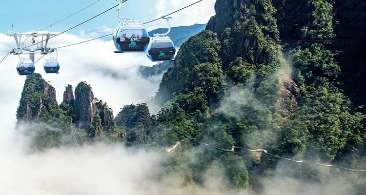 乘坐奧地利進(jìn)口的五指峰索道,全長(zhǎng) 3.7 公里,是全國(guó)單線最長(zhǎng)的索道,極限垂直高差達(dá) 1000 米。每小時(shí)客單向運(yùn)量最多 2000 人,運(yùn)行速度最快達(dá) 6 米 / 秒,最快單向運(yùn)行時(shí)間僅 11 分鐘。乘坐索道,可近觀五指峰,遠(yuǎn)眺天臺(tái)峰,仿佛騰云駕霧,穿梭于仙境之中 。