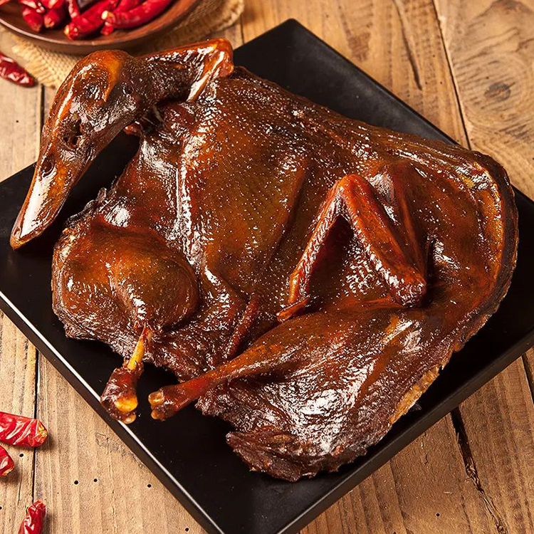 “常德醬板鴨”選用洞庭湖區(qū)蛋鴨為材料、經(jīng)三十多種名貴中藥浸泡,10余種香料、經(jīng)過風(fēng)干、烤制等15道工序精致而成,成品色澤深紅,皮肉酥香,醬香濃郁,滋味悠長,具有活血、順氣、健脾、養(yǎng)胃、美容之功效,是近期風(fēng)靡大江南北的一種風(fēng)味美食,是一道佐酒佳肴、送禮佳品。產(chǎn)品香、辣、甘、麻、咸、酥、綿適中,其中以辣稱奇,具有醇香可口,色香俱全,低脂不膩,回味無窮,食用方便的特點。