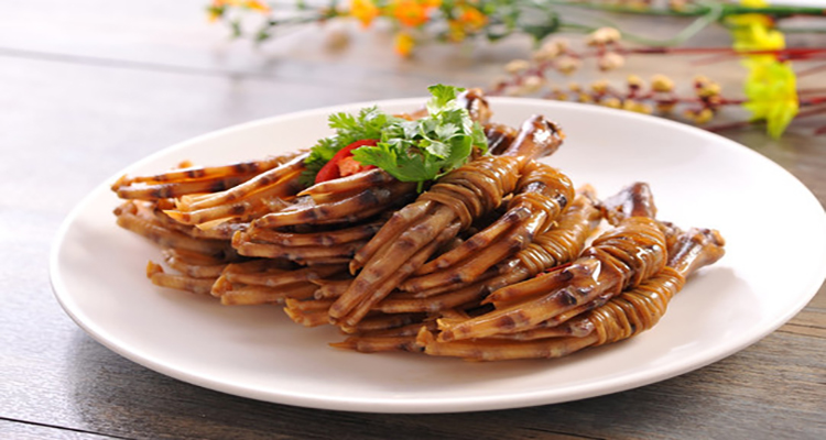 邵陽鴨腳包是邵陽長陽鋪的特色美食之一, 也是湖南地方極負盛名的特色菜,這道菜采用秘籍配方,以農(nóng)家散養(yǎng)土鴨的鴨腳、鴨腸、鴨胗、鴨肝、熟肉為主料,由新鮮鴨腸纏繞在鴨掌上,并且中間裹著一個鴨心或鴨胗等組合,再進行烘烤而成,這道菜在當?shù)胤浅J軞g迎,享有“嶺南荔枝王,邵州鴨腳包"之美譽。