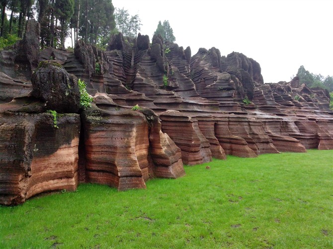 從地質歷史的印記中我們得知:大約在4億8千萬年的早奧陶世,這里曾是一片淺海環(huán)境,沉積形成了薄至中厚層瘤狀泥質灰?guī)r和石灰?guī)r,到了2億2千萬年中三疊世末期,印支期主幕安源造山運動使紅石林地區(qū)隆起成為陸地,并在地球應力的作用下,形成了北西和北東向兩組共軛節(jié)理,此后,在大自然鬼斧神工的雕琢下,以“風化”、“水蝕”、“溶蝕”和“重力”等外動力地質作用,將這片神奇的紅色巖溶臺地分割打磨成展現在我們面前的獨具鮮明特色的、中國唯一的一處紅色碳酸鹽巖石林。