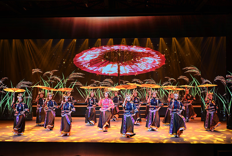 本臺(tái)非遺演藝,始終圍繞“展示、變遷、發(fā)展”的邏輯線,關(guān)鍵詞為“展演”,視覺(jué)感官為“秀”。通過(guò)我們的演繹,讓普通觀眾在了解湘西非遺異質(zhì)文化特點(diǎn)的基礎(chǔ)上,看懂看明白民族文化的演變發(fā)展,更好的推廣宣傳湘西。