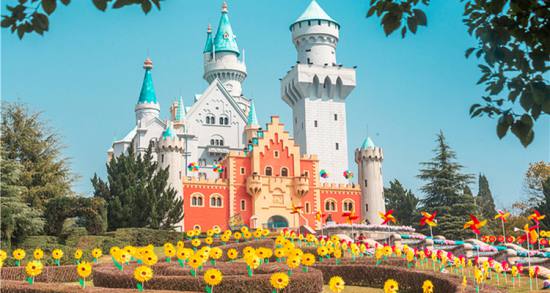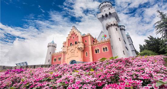 愛情谷,這里可以看到瑞士大鐘塔和歐洲小鎮(zhèn),處處都是典型的歐式建筑。右邊的丹麥國王加冕城堡,是個明星夢工廠和恐怖城。與它相鄰的那座綠頂紅墻的建筑是荷蘭海牙國際法院,內(nèi)部是一個世界蝴蝶博覽館,在那里可以免費欣賞到各種精美的蝴蝶標本。左邊的湖水叫天鵝湖,取名于俄國作曲家柴可夫斯基的同名舞劇《天鵝湖》,湖邊那三座高大的風(fēng)車是荷蘭的象征。右邊地上的泉眼是旱噴泉,在旱噴泉上方的建筑是意大利圣三山教堂,它與原型比例是1:1.5,每年都有許多對新人在這里舉行西式婚禮。這里還有一個歐洲小鎮(zhèn)仿建的是德國和法國民居,比例為1:1的歐式風(fēng)格,被開放成商場和服裝出租點。