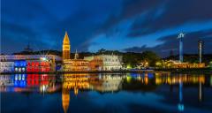 人類文明河,這里將世界上七處著名的景觀以微縮的方式匯集在河中,用長流不息的河水寓意人類文明的源遠流長。最近的一處景觀是法國四大洲噴泉,噴泉通過頂部歐、亞、非、美四位女性雕像和底部的駿馬、海豚表現(xiàn)了四大洲人民的團結(jié)向上和友誼,具有強烈的和平主義精神和時代感。從這里向遠處看,成白色貝殼狀的是澳大利亞悉尼歌劇院。緊挨著的是建在新加坡安德遜橋畔的魚尾獅,在魚尾獅旁邊的是美國自由女神像。在人類文明河的上游是埃及金子塔和其守護之神司芬克斯獅身人面像。河內(nèi)還有秘魯復(fù)活節(jié)島巨人頭像,面北朝南。