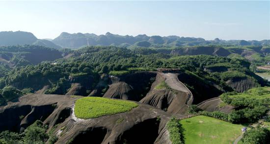 飛天山丹霞地貌區(qū)南西距郴州市25公里,面積48平方公里。屬紅巖丘陵地貌,地貌被大自然鬼斧神工雕刻成似人、似獸、似物、似禽,栩栩如生。主要丹霞地貌類型為寨(堡),它們坐落有序,寨身陡峭,紅崖赤壁,寨頂綠樹(shù)當(dāng)華蓋。不少寨頂溶蝕成渾圓形洼坑。