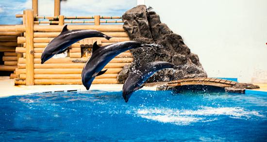 極地館:主要為極地動(dòng)物區(qū),分為白鯨池、海獅池、海豚池、海豹池、企鵝池、水獺池等水生生物展示休息表演池,以及北極狼舍、北極狐舍等陸生生物展示休息籠舍。館內(nèi)建有一個(gè)高大寬敞明亮,音響等設(shè)備設(shè)施先進(jìn)配備LED大型顯示屏的表演劇場,可供1800多游客同時(shí)近距離觀賞海豚、海獅等精彩表演。